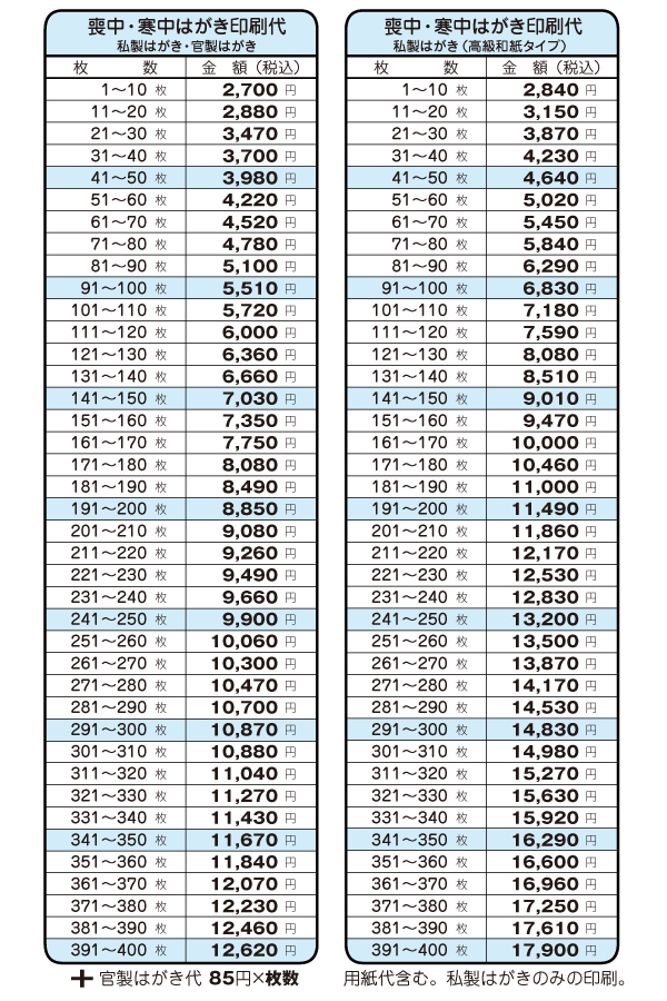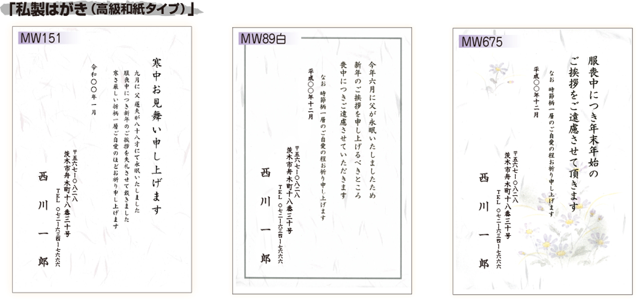 ●官製はがき、私製はがきをお選びいただけます。(和紙タイプは私製はがきのみ)